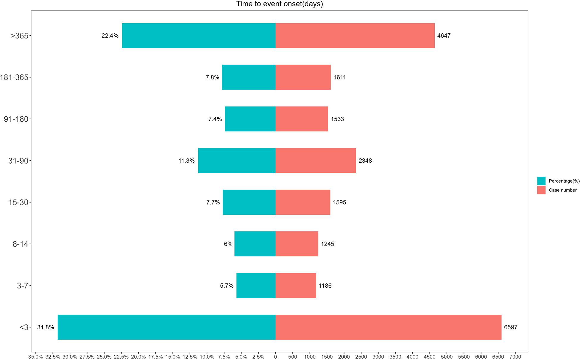 Distribution of time of adverse events.