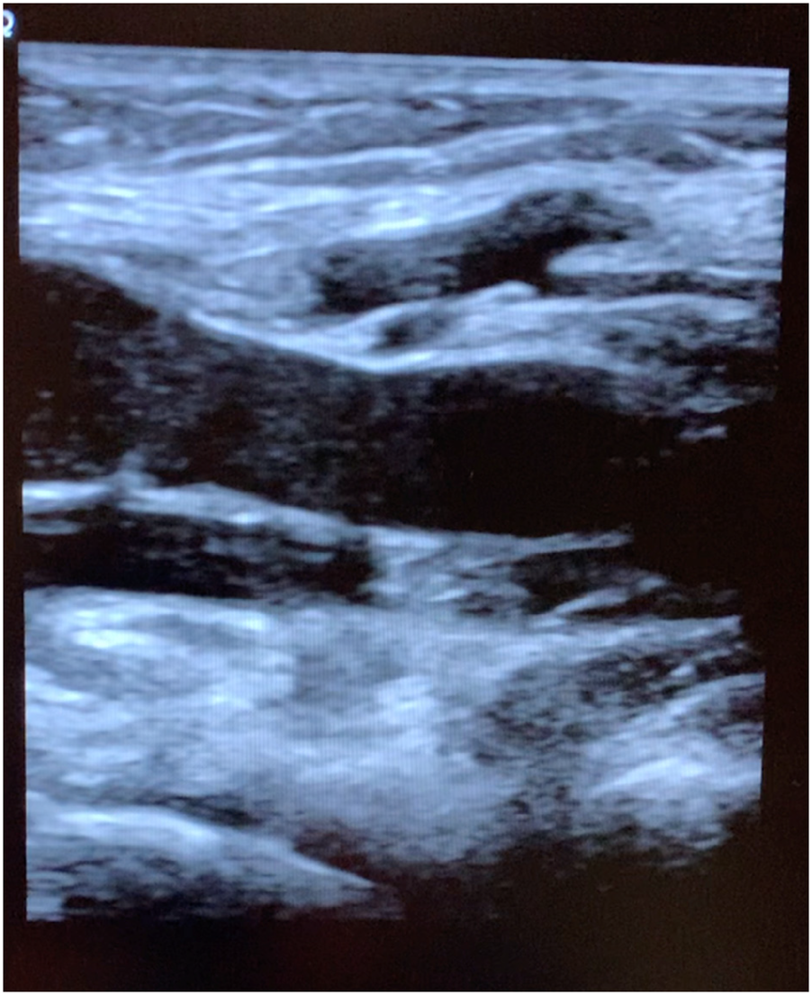 Longitudinal popliteal vein 10 min after exposure demonstrating residual rouleaux.