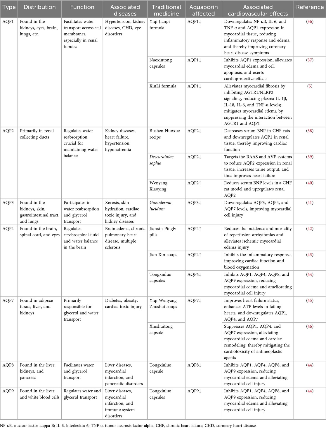Table 1. Regulation of aquaporin expression by traditional Chinese medicine in cardiovascular diseases.