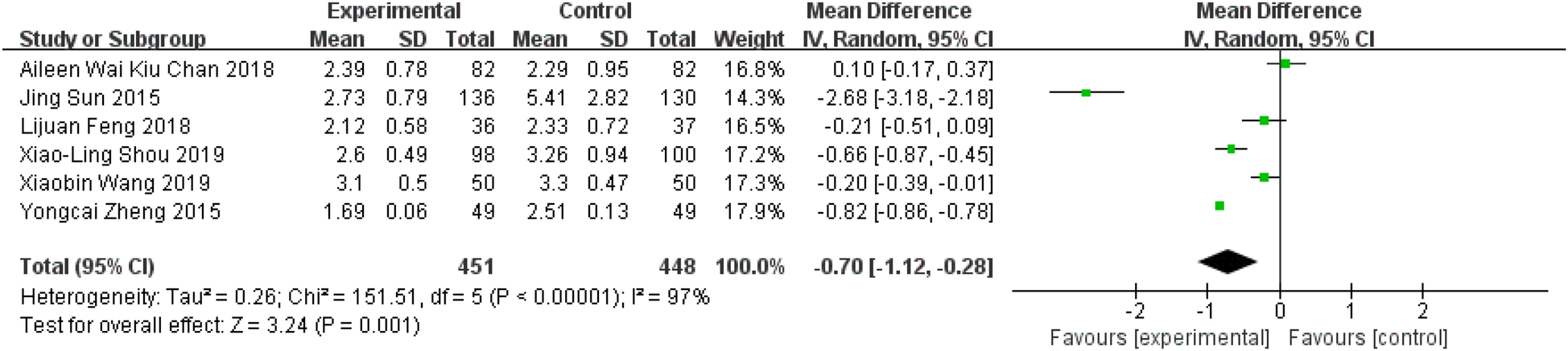 Effect of Tai Chi exercise on SBP levels in hypertensive patients (grade).