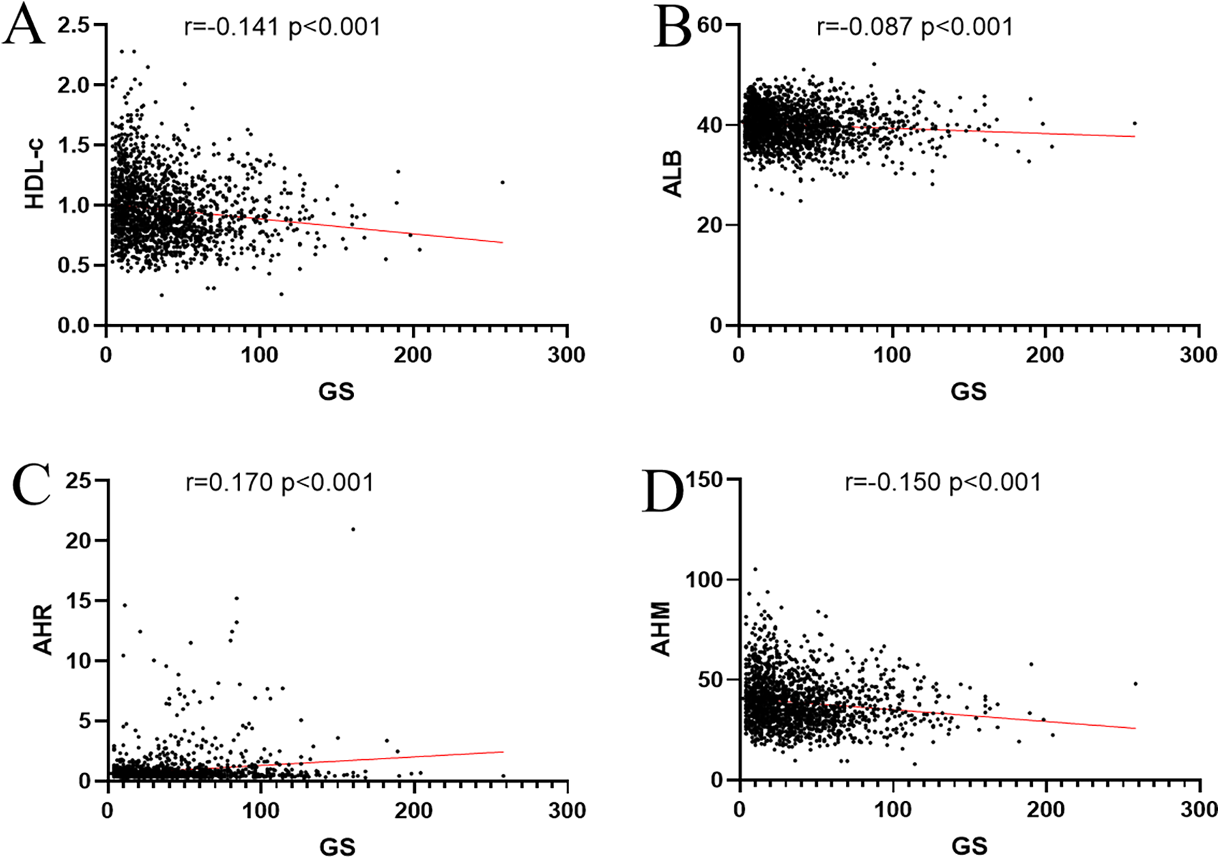 All the laboratory exam indexes related to the patients were collected, including serum alanine aminotransferase (ALT), aspartate aminotransferase (AST), ALB, γ-glutamyltransferase (GGT), TC, TG, HDL-c, LDL-c, creatinine (Cr), uric acid (UA), blood glucose (GLu), glycated hemoglobin (HbA1c), and other indicators. Fasting venous blood samples were collected the morning after admission, from which all indicators were assayed, and samples were sent to the hospital laboratory for analysis.