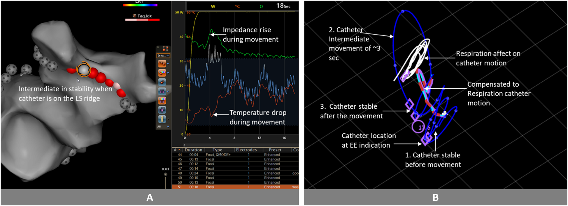 Ablation stability: was calculated using the following parameters: catheter velocity <2.5 cm/sec and displacement distance <3 mm.