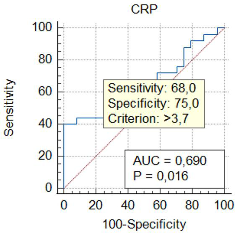 | CRP (mg/L) | 3.13 ± 2.13 | 12.10 ± 21.34 | 0.02 |