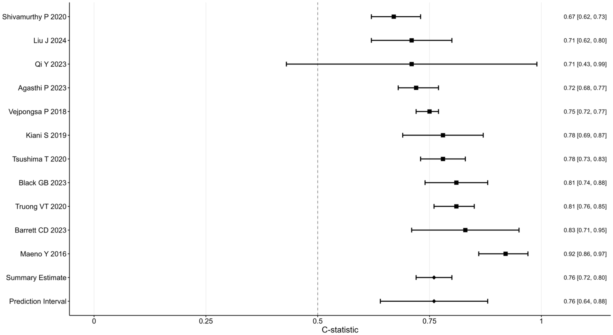 The risk of bias and applicability of the included studies were assessed using the Prediction model Risk Of Bias ASsessment Tool (PROBAST) (25).