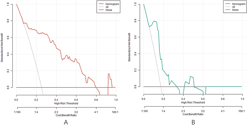 Analysis of decision curve of nomogram prediction model of clinical effect of IVAB combined with Met-S in the treatment of HF