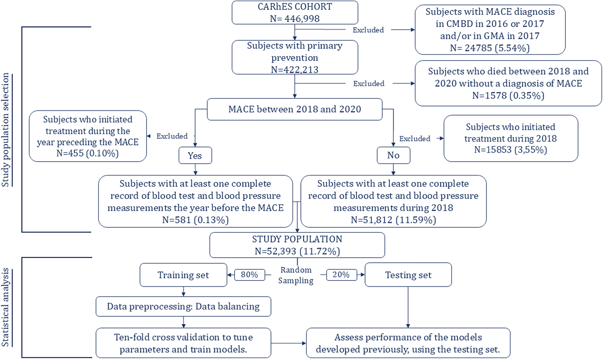 The present study was conducted within the CARhES cohort considering all individuals who were in the cohort in 2017. They were followed from 2018 until 2020 to identify if they suffered a major cardiovascular event (MACE).