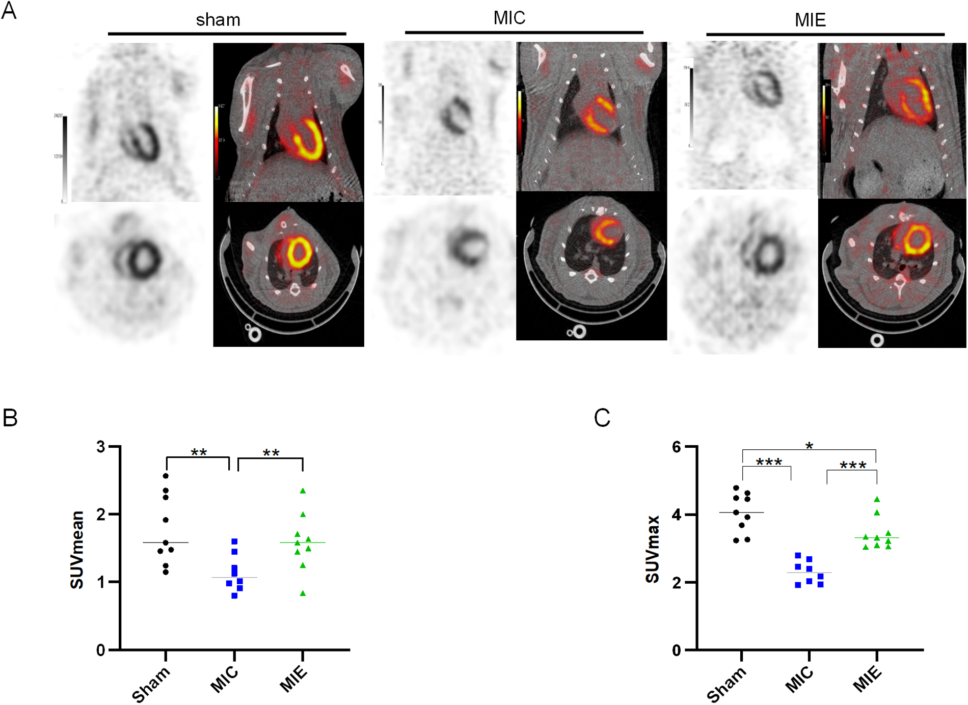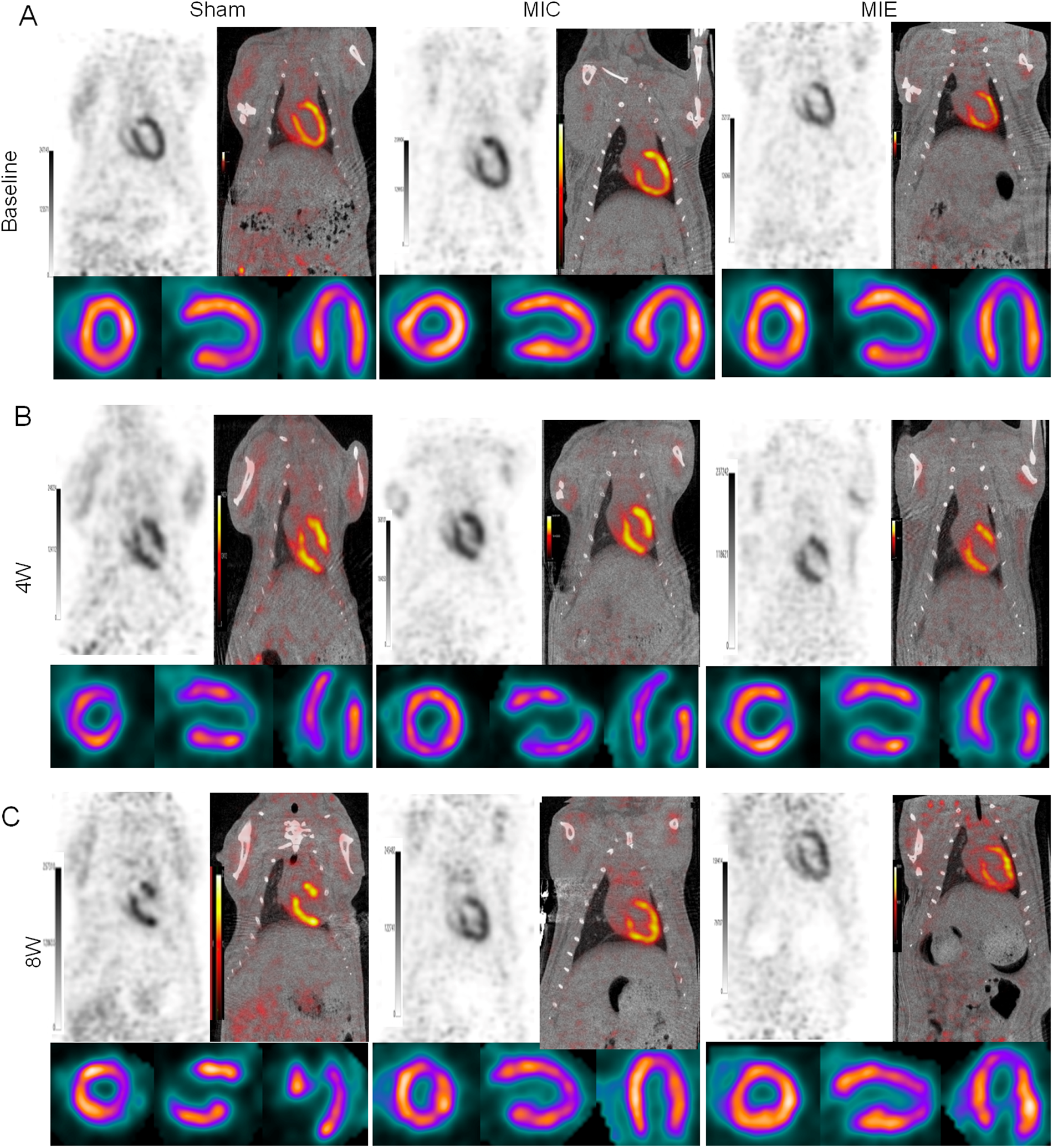 This study aimed to evaluate the impact of early exercise following acute myocardial infarction (AMI) on cardiac function, myocardial remodeling, glucose metabolism, and its molecular changes using cardiac magnetic resonance (CMR) imaging and positron emission tomography (PET).