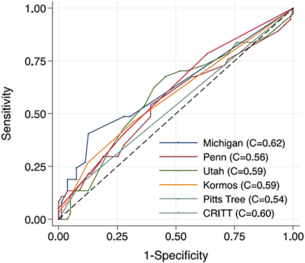 Fitzpatrick JR III Frederick JR Hsu VM Kozin ED O'Hara ML Howell E et al Risk score derived from Pre-operative data analysis predicts the need for biventricular mechanical circulatory support. J Heart Lung Transplant. (2008) 27(12):1286–92. 10.1016/j.healun.2008.09.006