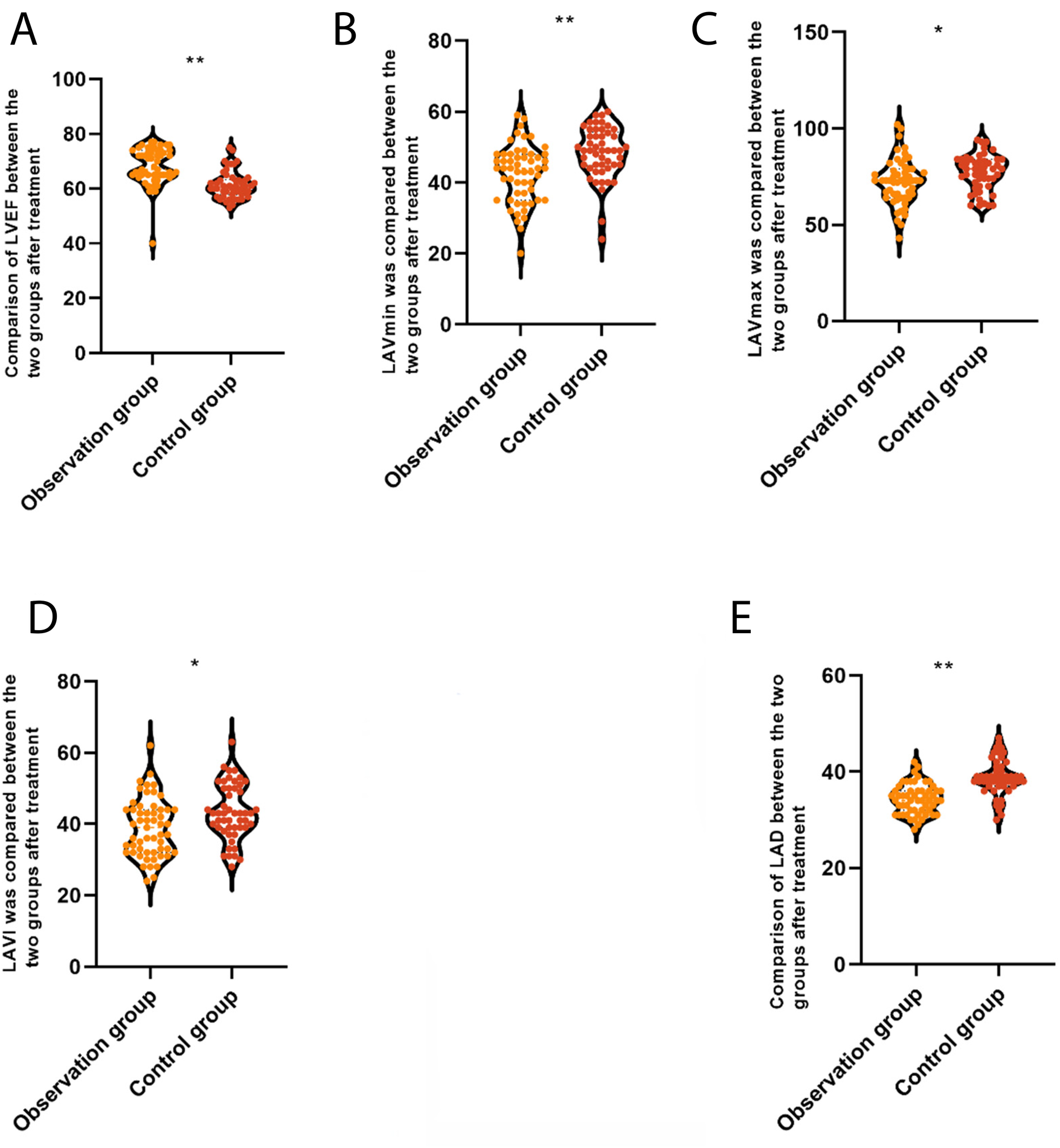 LAD, left atrial anteroposterior diameter; LAVI, left atrial volume index; LAVmax, left atrial maximum volume; LAVmin, left atrial minimum volume; LVEF, left ventricular ejection fraction.