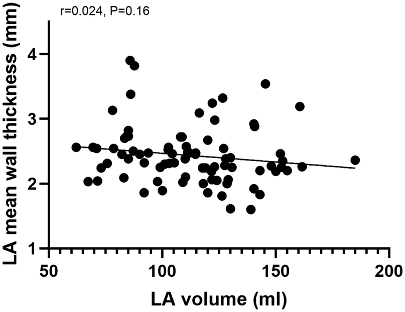 There are several limitations of this study. First, this study is a single-center observational study. The sample size is small, and a large sample size study is needed for further validation. Second, the prevalence of LVZ in our study cohort was higher than reported in previous literature, which may be attributed to clinician referral patterns. This observation suggests potential patient selection bias in our study population. Third, using current magnetic resonance imaging techniques to diagnose atrial scarring has some limitations and does not validate histologic evidence well. In addition, the measured LAWT may be biased because the heart keeps beating and MRI cannot avoid motion artifacts.