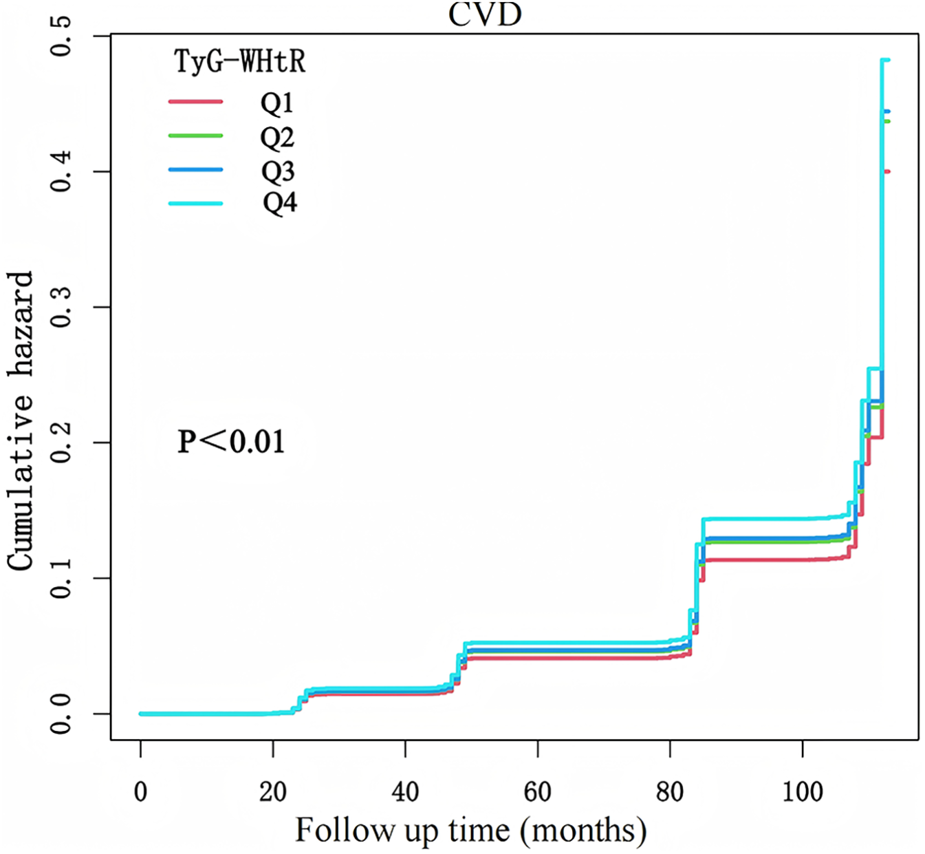 K-M plot of CVD incidence by TyG-WHtR.