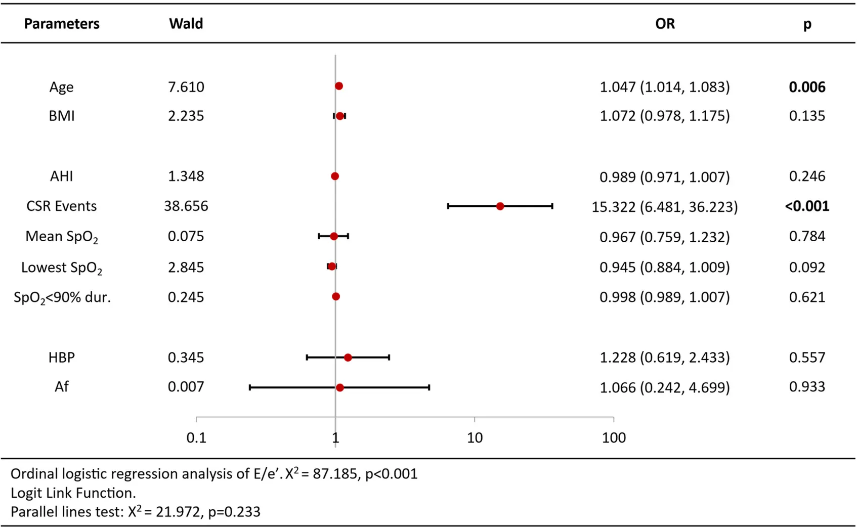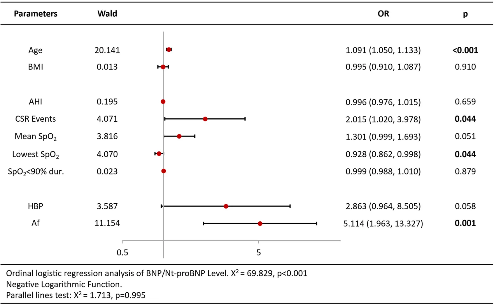 A total of 171 patients were included. Patients with CSR events exhibited significantly higher BNP/Nt-proBNP levels and more pronounced cardiac structural remodeling, including left atrial enlargement and elevated E/e' ratios. Further analysis identified CSR events as independent risk factors for elevated BNP/Nt-proBNP levels [OR = 2.02, 95%CI (1.02–3.98), p = 0.044], left atrial diameter index [OR = 3.15, 95%CI (1.50–6.64), p = 0.002], and E/e’ ratio [OR = 15.32, 95%CI (6.48–36.22), p < 0.001].