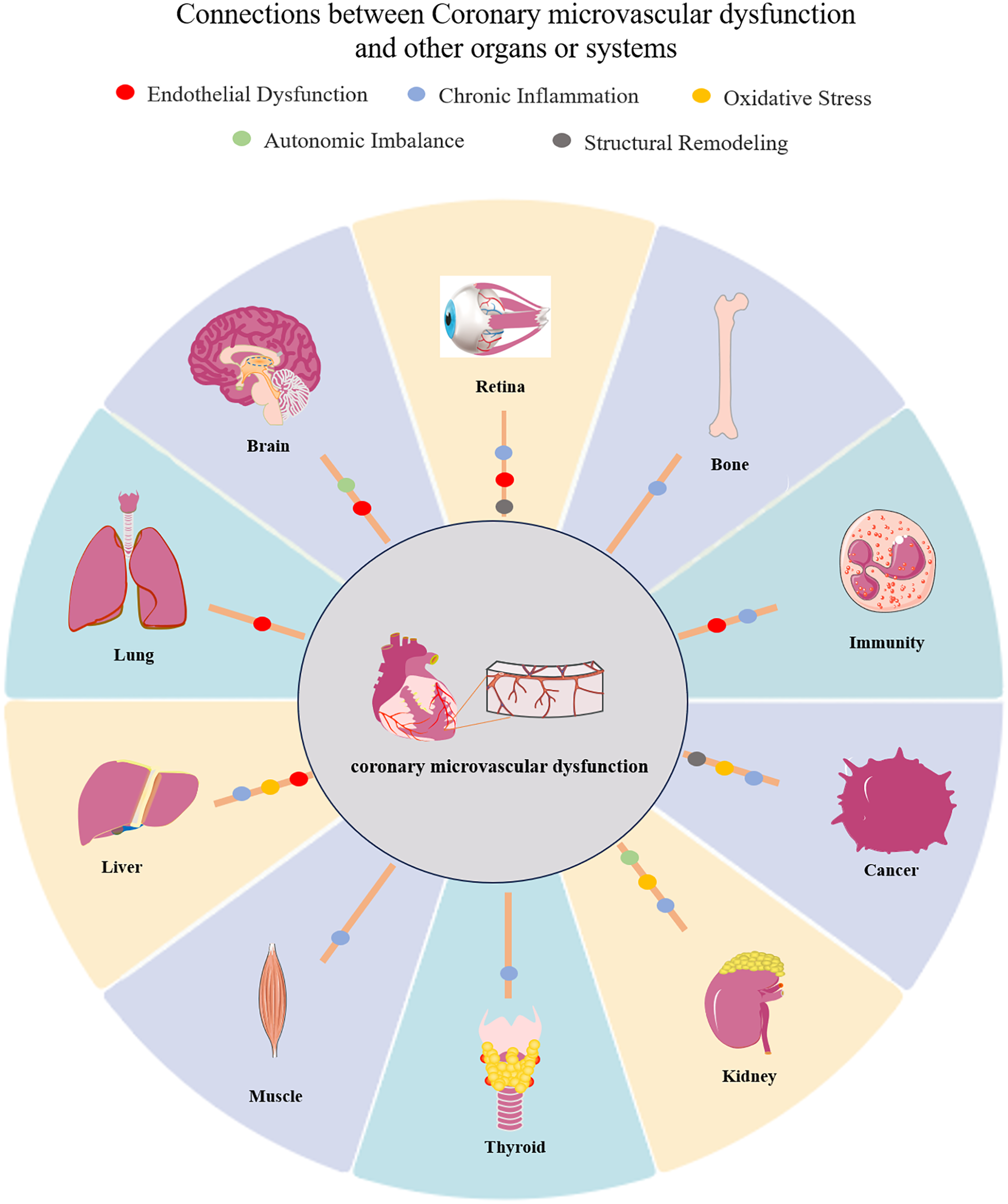 Duan Y, Liu J, Wang S, Luan T, Zhou J, Cui Z, Wang A, Xu M, Hu S and Mao Y (2025) Coronary microvascular dysfunction: a review of its association with extracardiac organ pathologies. Front. Cardiovasc. Med. 12:1616332. doi: 10.3389/fcvm.2025.1616332