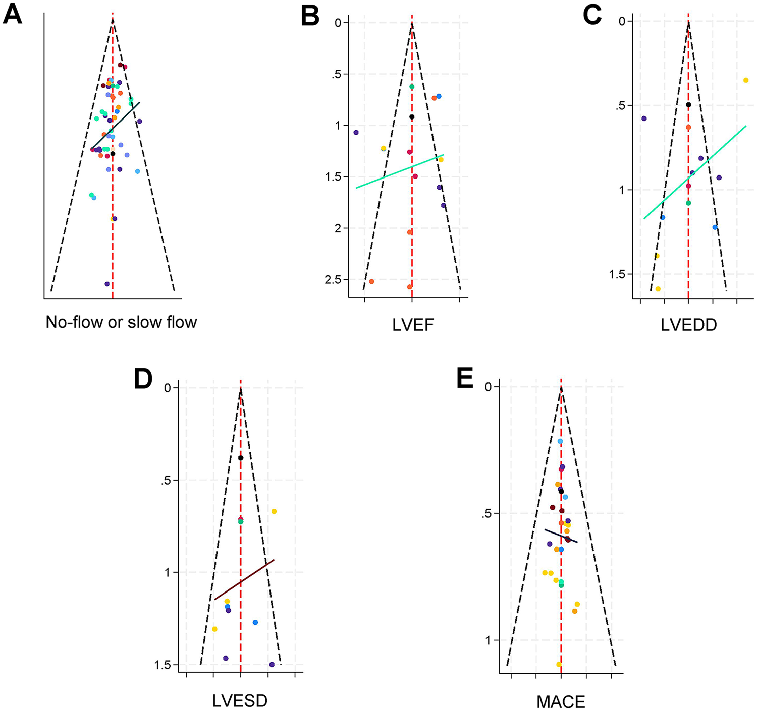 For statistics, odds ratios (ORs) and their 95% CIs were used to present results for the binary variables of no-reflow incidence and MACE incidence. The ORs effectively measured the impact of interventions on event probability, while the 95% CI provided a credible range for assessing result stability. For continuous variables such as LVEF, LVEDD, and LVESD, mean differences (MDs) served as effect analysis statistics. The MD intuitively reflected the average differences among interventions for these continuous variables, facilitating quantitative evaluation and comparison of intervention effects.