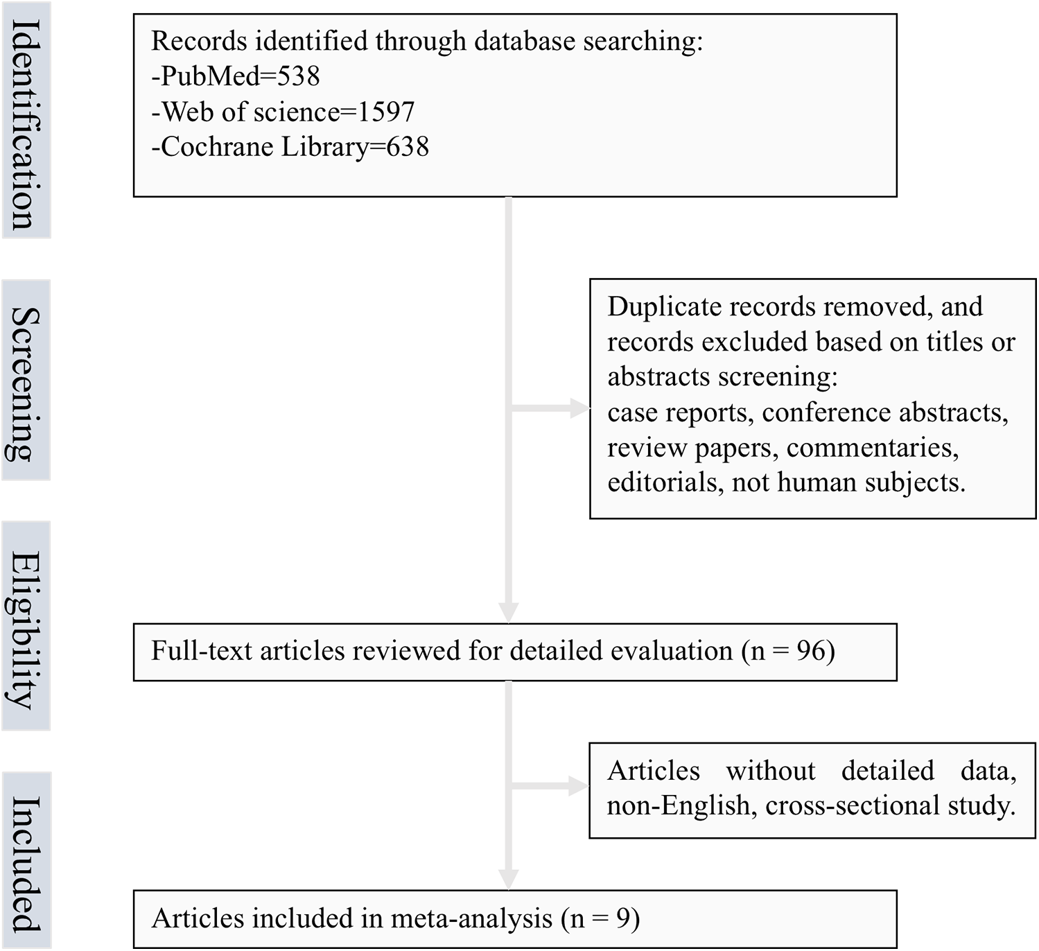 The following study types were systematically excluded during screening: (1) animal studies; (2) non-longitudinal study designs (cross-sectional analyses, case reports), gray literature (conference abstracts), and non-peer-reviewed materials (reviews, editorials); (3) non-English publications; (4) studies lacking extractable outcome metrics (risk ratios with 95% CIs or raw data for their computation).