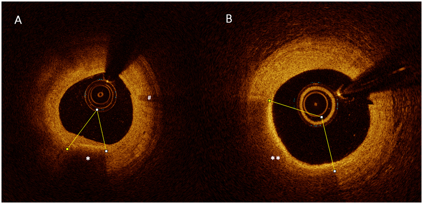 Coronary angiographies (CAG) and OCT examination were performed according to the standard techniques, and the culprit lesions were identified based on ECG and CAG findings. A commercially available OCT system (Dragonfly Duo or Dragonfly Optis, St Jude Medical, Inc., USA) was used for OCT examination. OCT images were analyzed based on available consensus documents by two blinded expert investigators independently (CWL and LW) using an off-line OCT console (St. Jude Medical). Disagreements were solved by consensus with a third investigator. OCT analysis was conducted both at the culprit lesion and the non-culprit lesion across the entire culprit vessel.