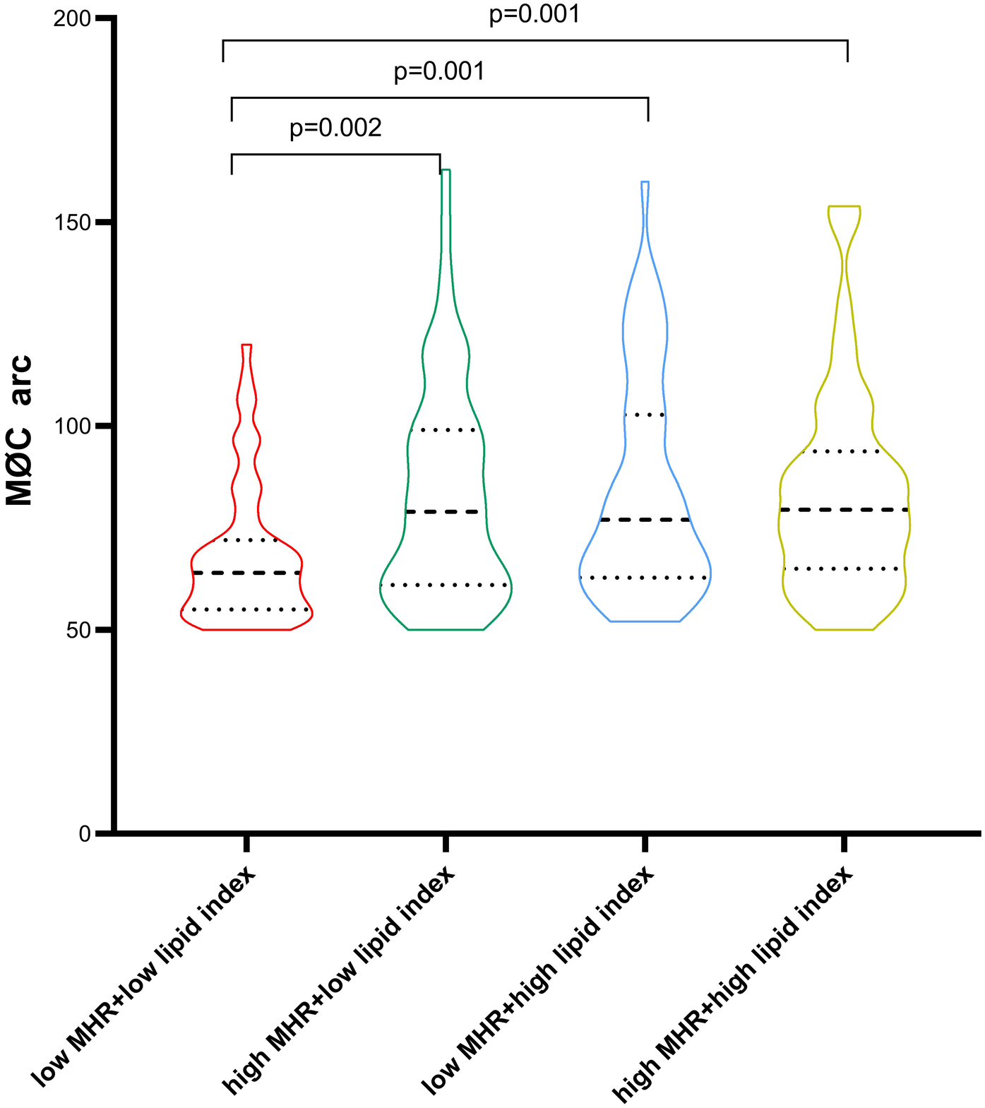 The systemic inflammation and plaque vulnerability differed significantly between UAP, NSTEMI, and STEMI, so a subgroup analysis was conducted based on clinical presentation. Moreover, individuals were divided into two groups based on hs-CRP levels of <2 mg/L or ≥2 mg/L, and the inflammation biomarkers and plaque vulnerability were assessed at different hs-CRP levels. In addition, we divided patients with macrophage clusters into four groups based on the median value of MHR and lipid index.