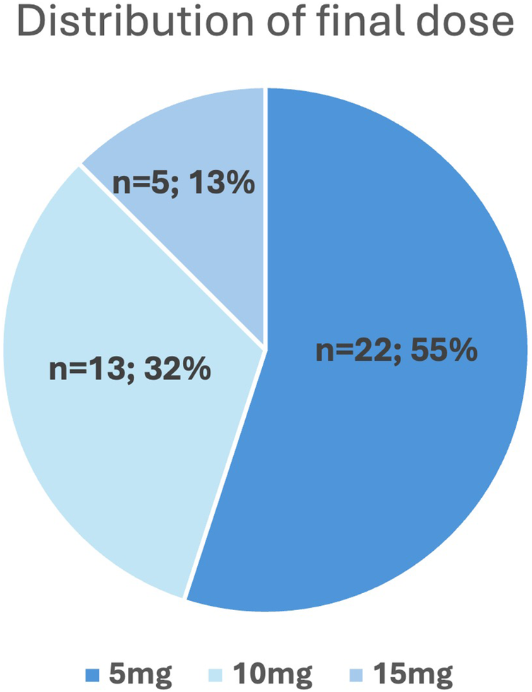 One patient (2.5%) developed a LVEF drop <50%, and this was under the highest mavacamten dose. The course of further treatment remained uneventful on the lower dose of 10 mg. Overall, our real-world data on adverse events align with those observed in the controlled clinical trial settings (6, 8, 20), supporting the safety profile of mavacamten provided that recommended monitoring is followed.