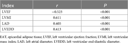 3.3 Correlation analysis between EAT thickness and echocardiographic indicators