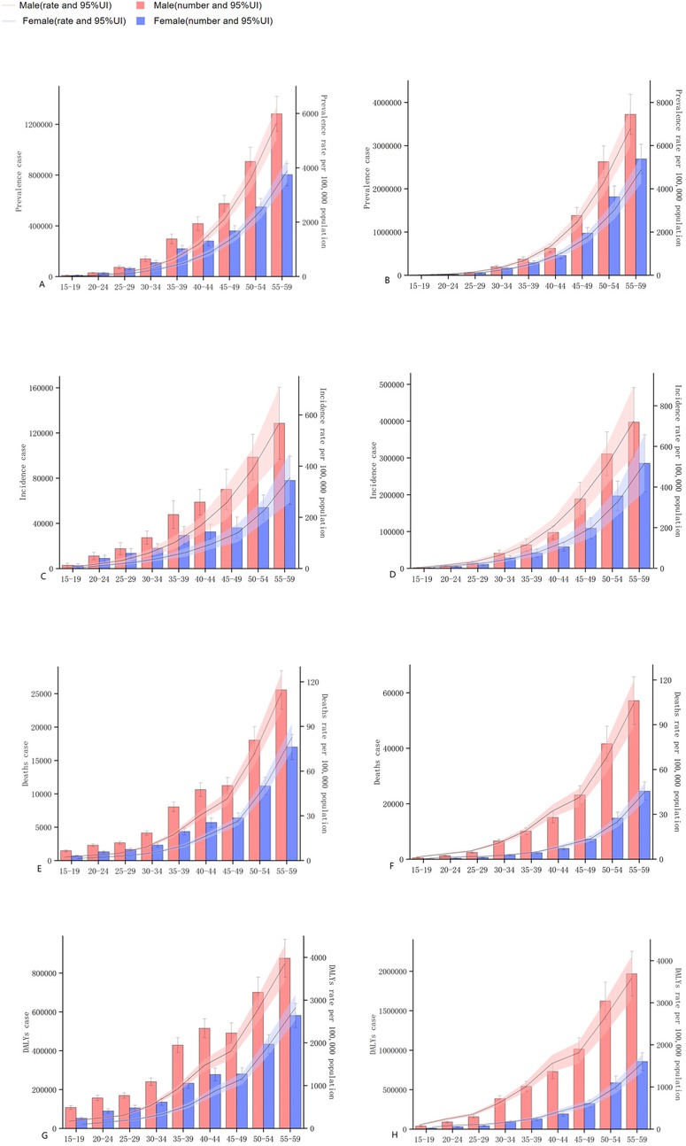 This study has certain limitations. Firstly, its data is derived from the model estimates of GBD. Although it has been strictly corrected, it still cannot completely avoid the uncertainties brought about by model assumptions and the quality of input data. Secondly, stratified analysis of urban-rural and regional differences has not been conducted, making it difficult to deeply reveal the intrinsic heterogeneity of disease burden. Furthermore, the failure to integrate multiple risk factors for joint analysis has limited the in-depth explanation of the reasons for the changes in disease burden from the perspective of risk exposure.