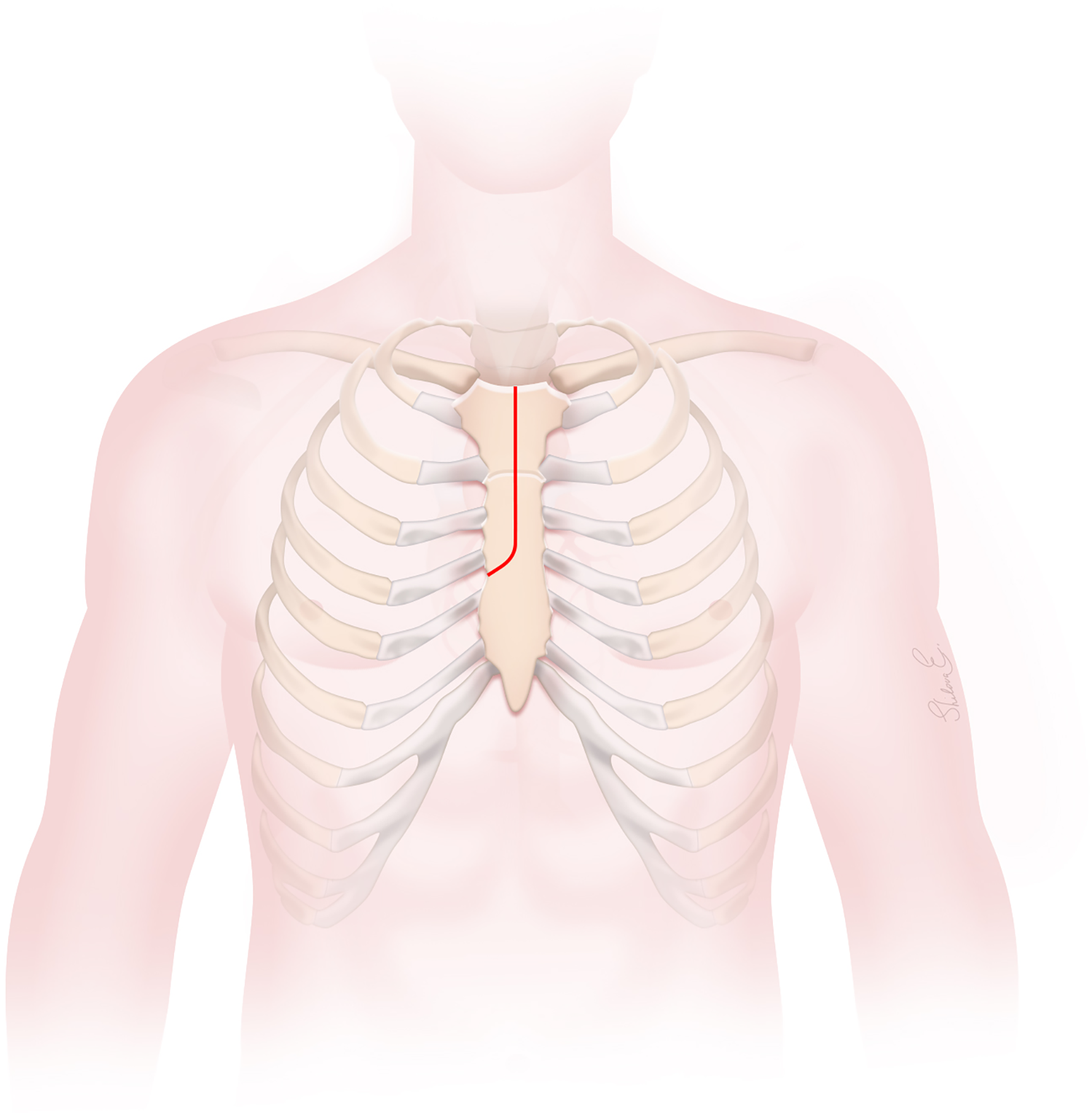 The J-type upper hemisternotomy incision.