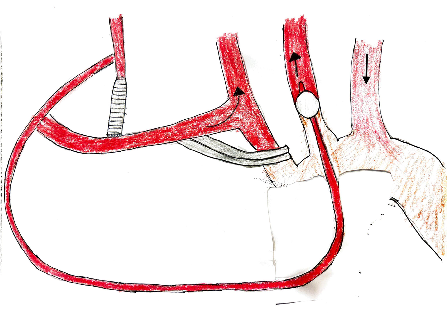 Kim and colleagues perform hemiarch repair via UHS under HCA without cerebral perfusion (11). In contrast, we use cerebral perfusion in all UHS hemiarch cases to reduce potential complications, address extensive pathology, and increase safe HCA time, which is particularly advantageous when utilizing a smaller incision. We use bACP for extended hemiarch replacements, particularly when the distal anastomosis is opposite the left carotid or left subclavian artery, as these procedures typically involve longer HCA times. This approach maintains continuous cerebral perfusion while keeping the operative field clear. Innominate artery cannulation is a viable alternative to right axillary cannulation, avoiding an additional incision and side-branch graft, though it may add clutter to the UHS field. For shorter anticipated HCA times, such as during open anastomosis at the level of the innominate artery, we utilize RCP during UHS.
