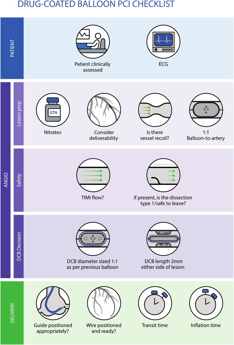 e. The same safety checklist should be applied again after DCB delivery, including assessment of patient clinical status, recoil, and dissection.