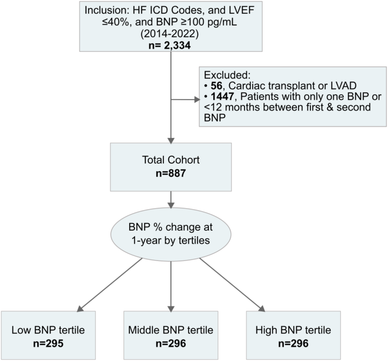 Cohort identification and BNP change tertile stratification