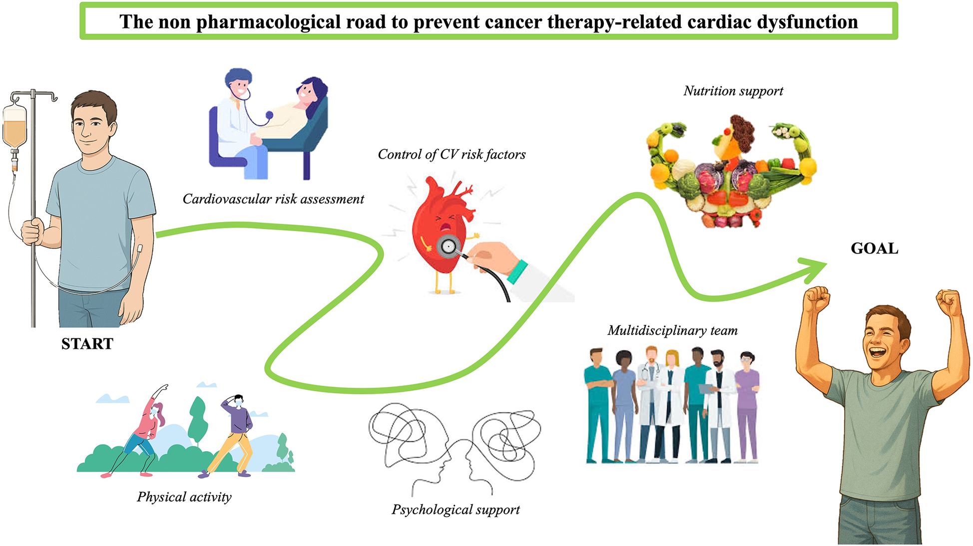 Non-pharmacological strategies represent an essential complement to pharmacological cardioprotection in cancer patients. These strategies include behavioural interventions, lifestyle modifications, psychological support, and a multidisciplinary approach aimed at improving quality of life and reducing overall cardiovascular risk.