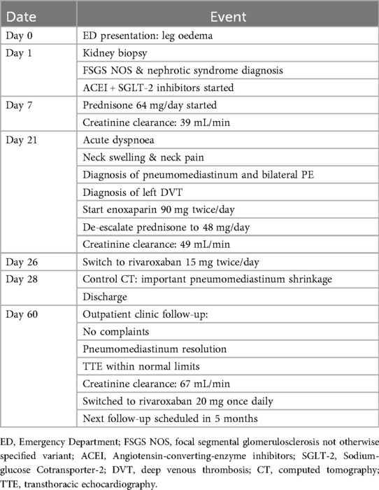 Discussion: The rare occurrence of FSGS treated with glucocorticoid therapy, complicated by severe thromboembolic events and pneumomediastinum, emphasizes the complexity of managing the treatment of a young patient by balancing the risks and benefits and tailoring the dosage to achieve maximal therapeutic effect with minimal adverse events.