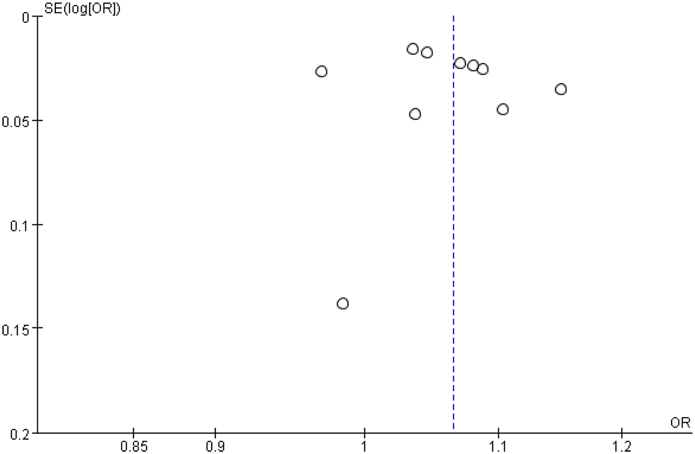 Twelve studies involving 5,223 patients evaluated the association between stent length and ISR risk after PCI in CAD patients. Heterogeneity was significant (P = 0.002, I2 = 63%). The random-effects meta-analysis showed that longer stent length was significantly associated with an increased risk of ISR [OR = 1.05, 95% CI (1.04, 1.07), P < 0.00001] (Figure 2).