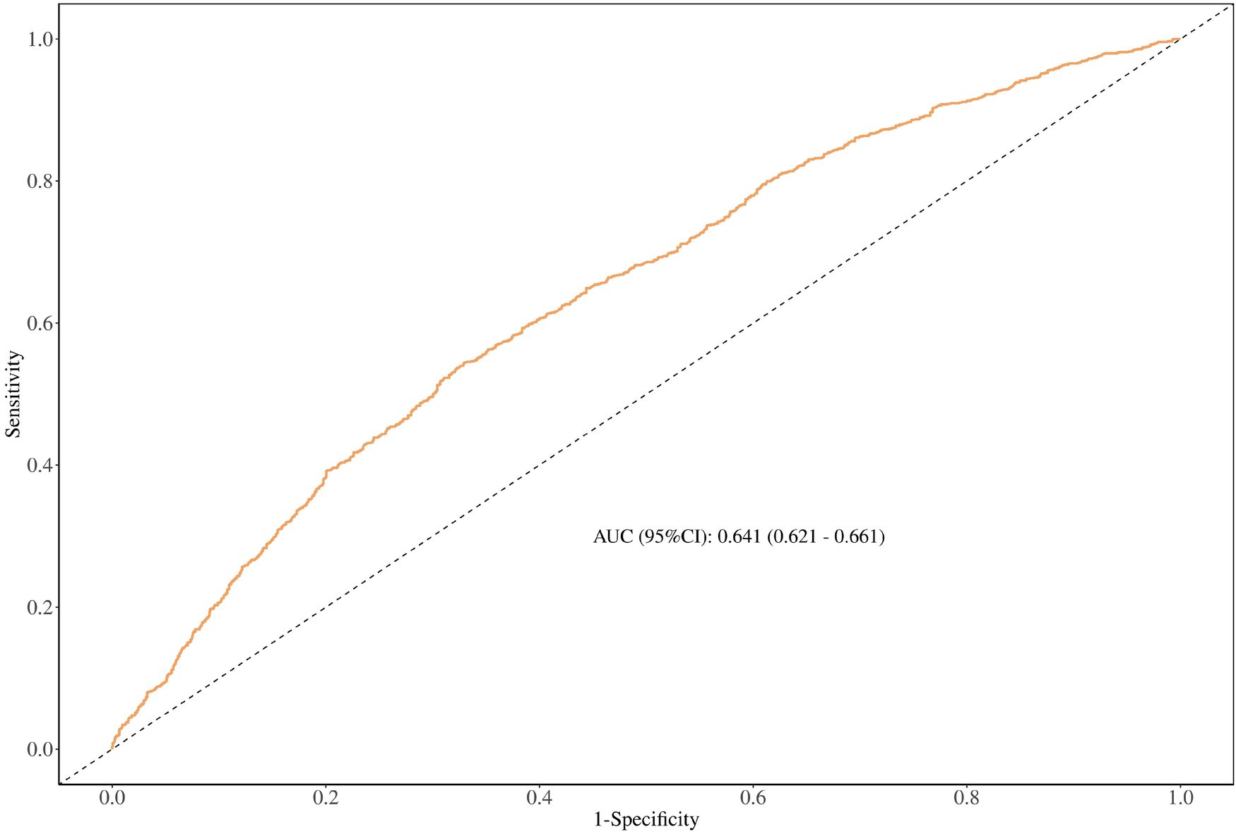 A total of 2,998 participants were included in the present study, with a hypertension prevalence of 39.93%. After adjusting for confounding factors, the ORs of hypertension in Q2, Q3, Q4 were 1.641 (1.277–2.109), 1.768 (1.371–2.281), 2.463 (1.794–3.382) compared with the lowest quartile (Q1), respectively. RCS indicated that the TyG-BMI index was nonlinearly associated with hypertension (Pfor overall < 0.001, Pfor nonlinear = 0.046). The ROC analysis indicated that the TyG-BMI index had a 64.1% (AUC: 0.641, 95% CI: 0.621–0.661) ability to distinguish hypertension. Subgroup analysis in participants without diabetes, dyslipidemia, hyperuricemia and central obesity as well as sensitivity analyses also demonstrated the similar relationship between the TyG-BMI index and hypertension.