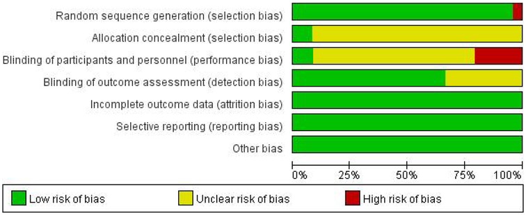 The Cochrane Collaboration's tool for assessing risk of bias was used to evaluate the quality of the included studies. The evaluation results are shown in Figure 2.