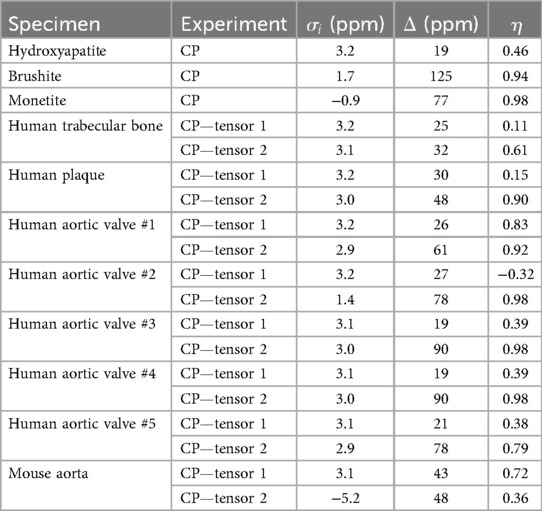 Table 2. 31P chemical shift tensor parameters of synthetic and biological calcium phosphate compounds.