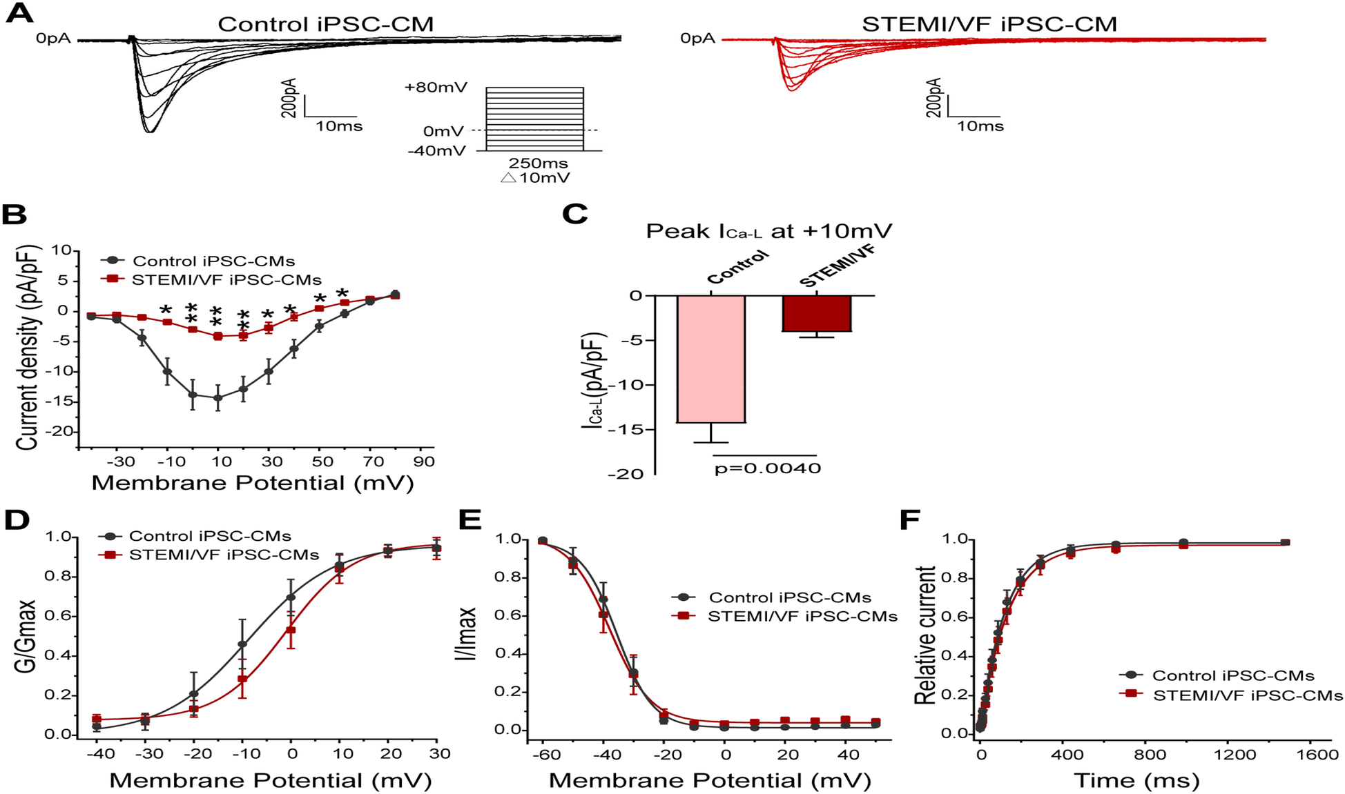 Electrophysiological characterization of ICa–L in STEMI/VF iPSC-CMs