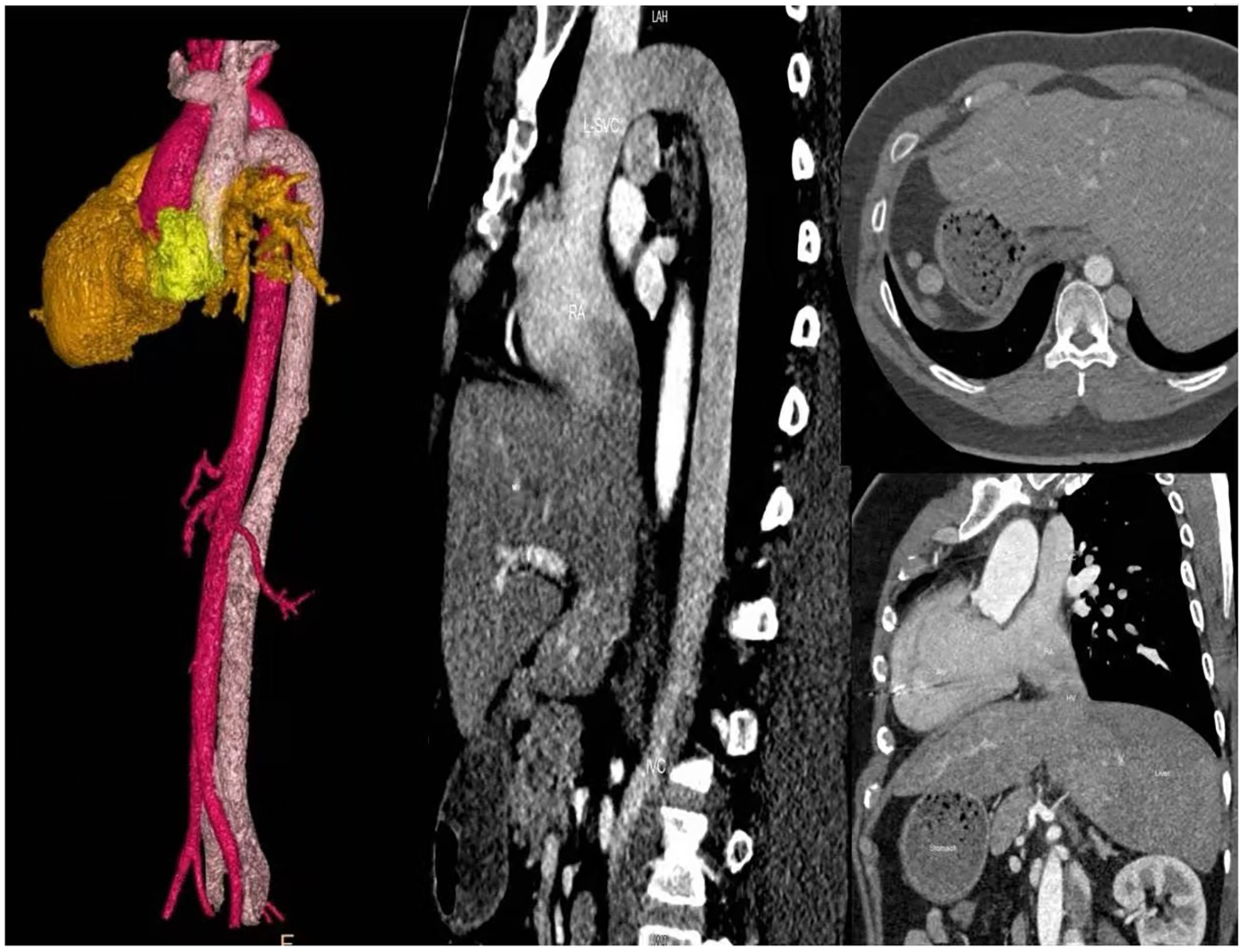 The incidence of mirror-image dextrocardia is approximately 0.01%, and 23%–70% of cases are associated with other cardiovascular malformations (1). The absence of the hepatic segment of the IVC, with continuation via the azygos vein, occurs in about 0.6% of individuals. Although this anomaly is typically asymptomatic, it can lead to significant elongation and sharp angulation along the femoral vein access path, making it challenging for the leadless pacemaker delivery system to navigate (4, 5). For preoperative evaluation of complex congenital heart diseases, high-resolution CTA is widely recommended by clinical guidelines (2, 3).