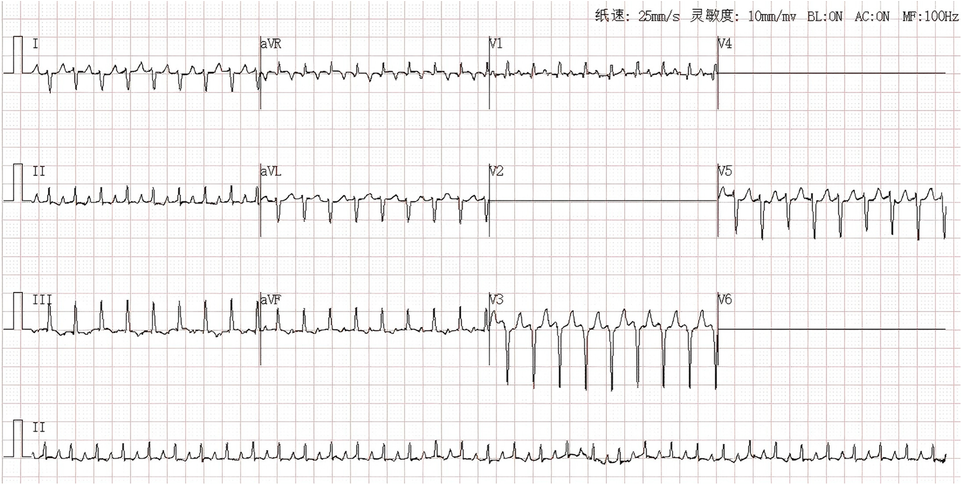 A female infant, born 43 min, was transferred to our hospital's NICU via emergency transfer due to “tachycardia lasting over half an hour after premature birth.” To better understand the supraventricular tachycardia an esophageal electrode was inserted, the esophageal electrocardiogram confirmed the diagnosis of dual tachycardia (persistent atrial tachycardia combined with short episodes of ventricular tachycardia).