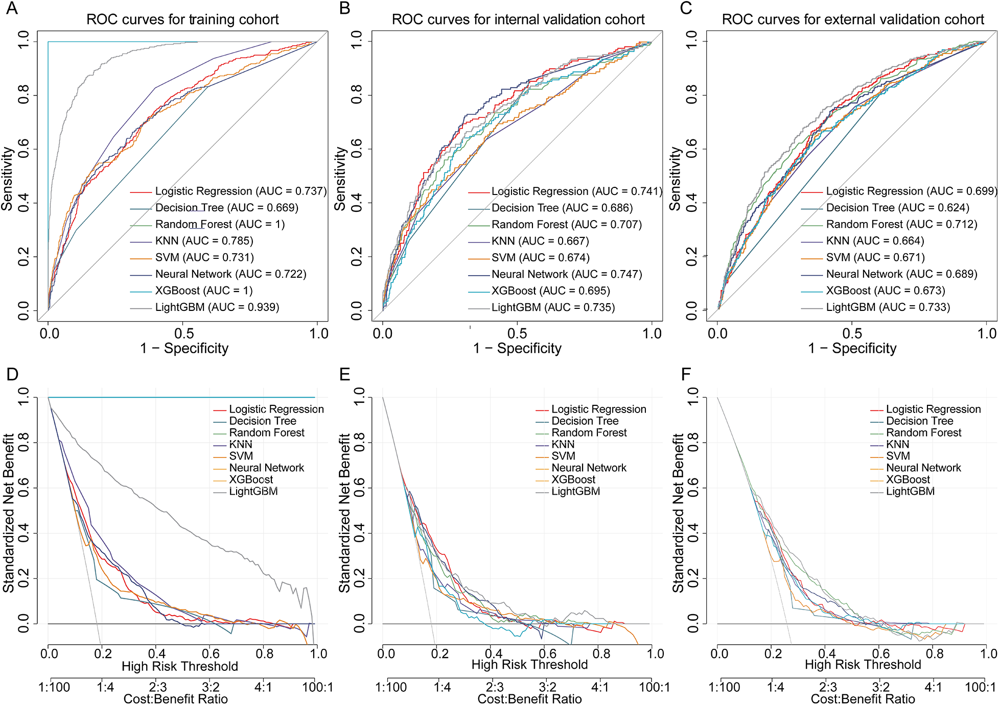 Despite these findings, several limitations must be considered when interpreting the results. First, the retrospective study design inherently precludes causal inference, and residual confounding from unmeasured factors, such as socioeconomic status and treatment adherence, cannot be fully excluded. Second, although external validation helps mitigate center-specific bias, the single-center recruitment strategy and limited ethnic diversity of the cohort may restrict the generalizability of the findings. Third, the lack of phenotypic stratification for HF and pneumonia limits insights into potential heterogeneity in RAR's prognostic utility across disease subtypes. Future work requires prospective multicenter validation with subtype stratification, coupled with mechanistic trials testing whether RAR-directed interventions (e.g., anti-inflammatory therapies, albumin supplementation) improve survival beyond reflecting disease severity. Additionally, the absence of biomarkers like NT-proBNP, CRP, and LVEF is a limitation due to their high missing proportions in the dataset, leading to their exclusion from the model. This highlights the advantage of RAR as an easily accessible and cost-effective biomarker, especially in settings where these specialized markers are unavailable. Finally, a potential limitation is overfitting in the machine learning model. Although the training set showed a high AUC (0.939), the AUCs for the internal (0.735) and external (0.733) validation sets were lower. However, the close similarity between the internal and external validation AUCs suggests reasonable model generalizability. We applied regularization and early stopping to mitigate overfitting, but further refinement is needed to improve model robustness across different datasets.