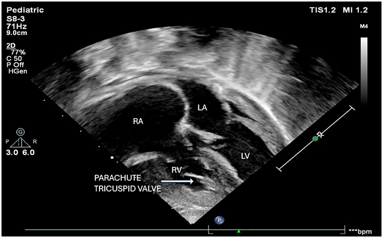 Abstract Parachute tricuspid valve (PTV) is an exceedingly rare congenital anomaly, often found in association with acyanotic heart defects. Its occurrence in association with cyanotic congenital heart disease (CCHD) is even less common. We report the case of a 1-year-old male presenting with complex cyanotic heart disease along with parachute tricuspid valve. Detailed evaluation revealed a constellation of anomalies, including parachute tricuspid valve in association with double outlet right ventricle (DORV) with D-malposed great arteries, severe pulmonary stenosis, and a non-routable ventricular septal defect. Echocardiography played a vital role in defining the complex anatomy and guided the decision toward single-ventricle palliation. This case underscores the importance of meticulous anatomical assessment in patients with congenital heart disease and adds to the sparse literature on this rare condition.