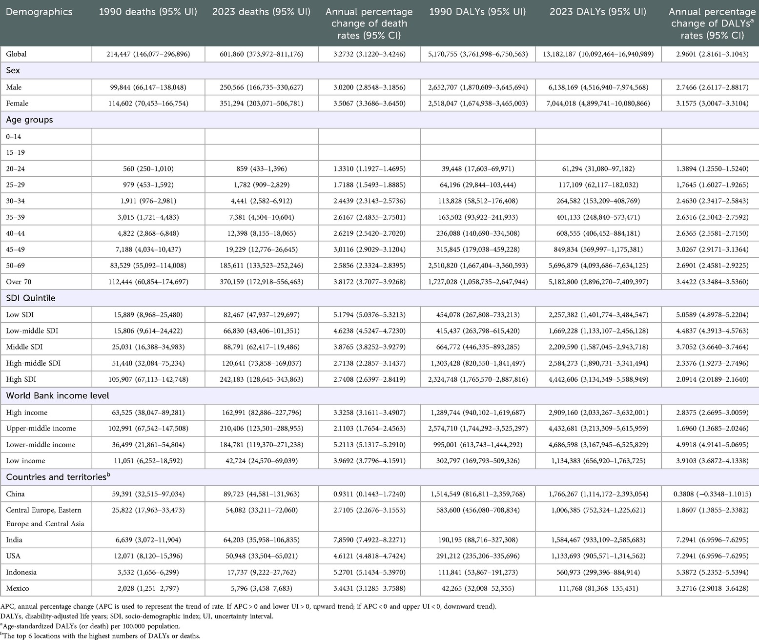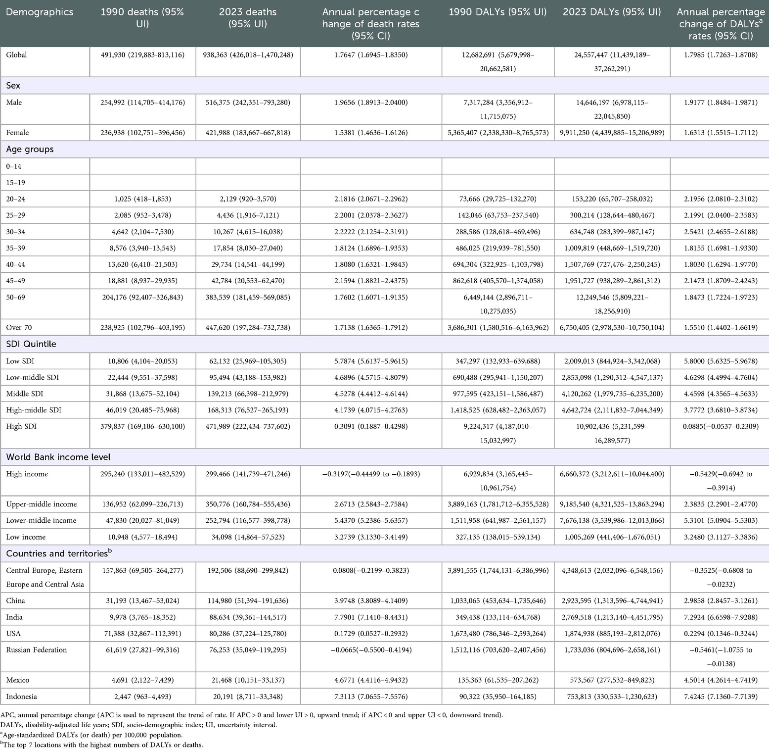 2.3 Deaths, DALYs, and annual percentage change (APC)