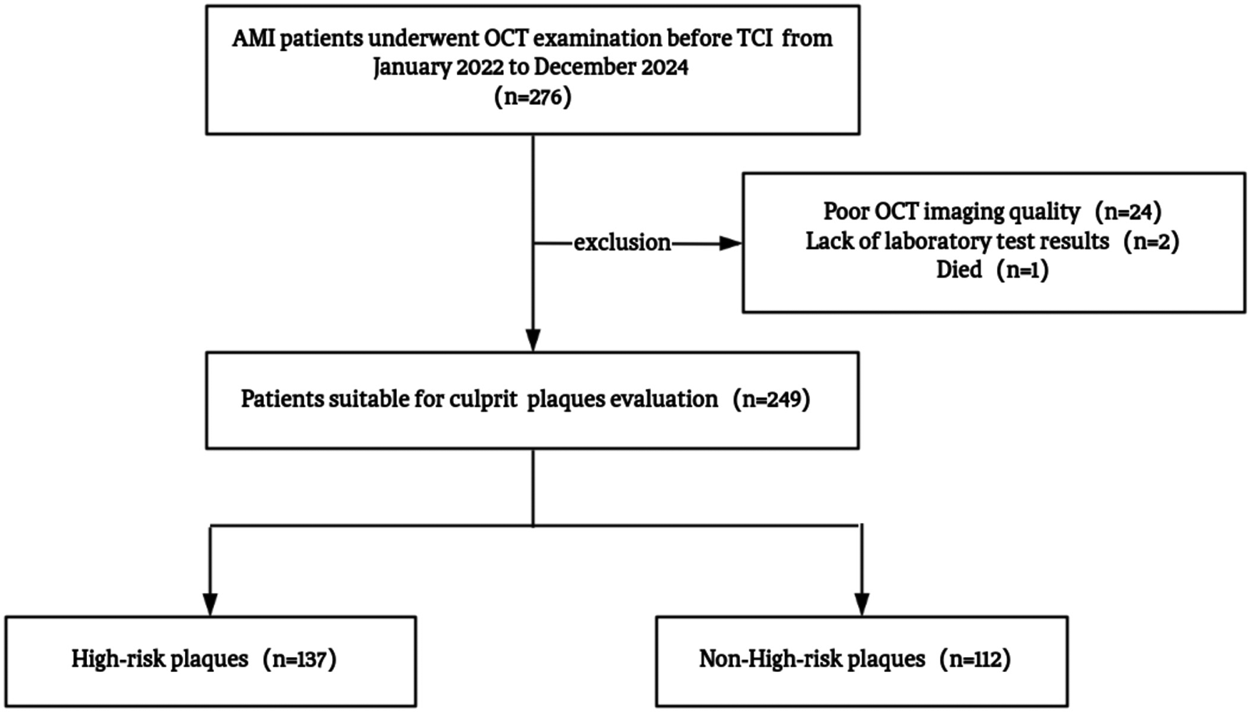 However, evidence directly linking these lipid markers to OCT-characterized high-risk plaque morphology remains unclear. Therefore, this study investigated the associations between non-traditional lipid parameters and OCT-characterized high-risk plaques in AMI culprit lesions, aiming to elucidate their potential value for lipid-based risk stratification and individualized management.