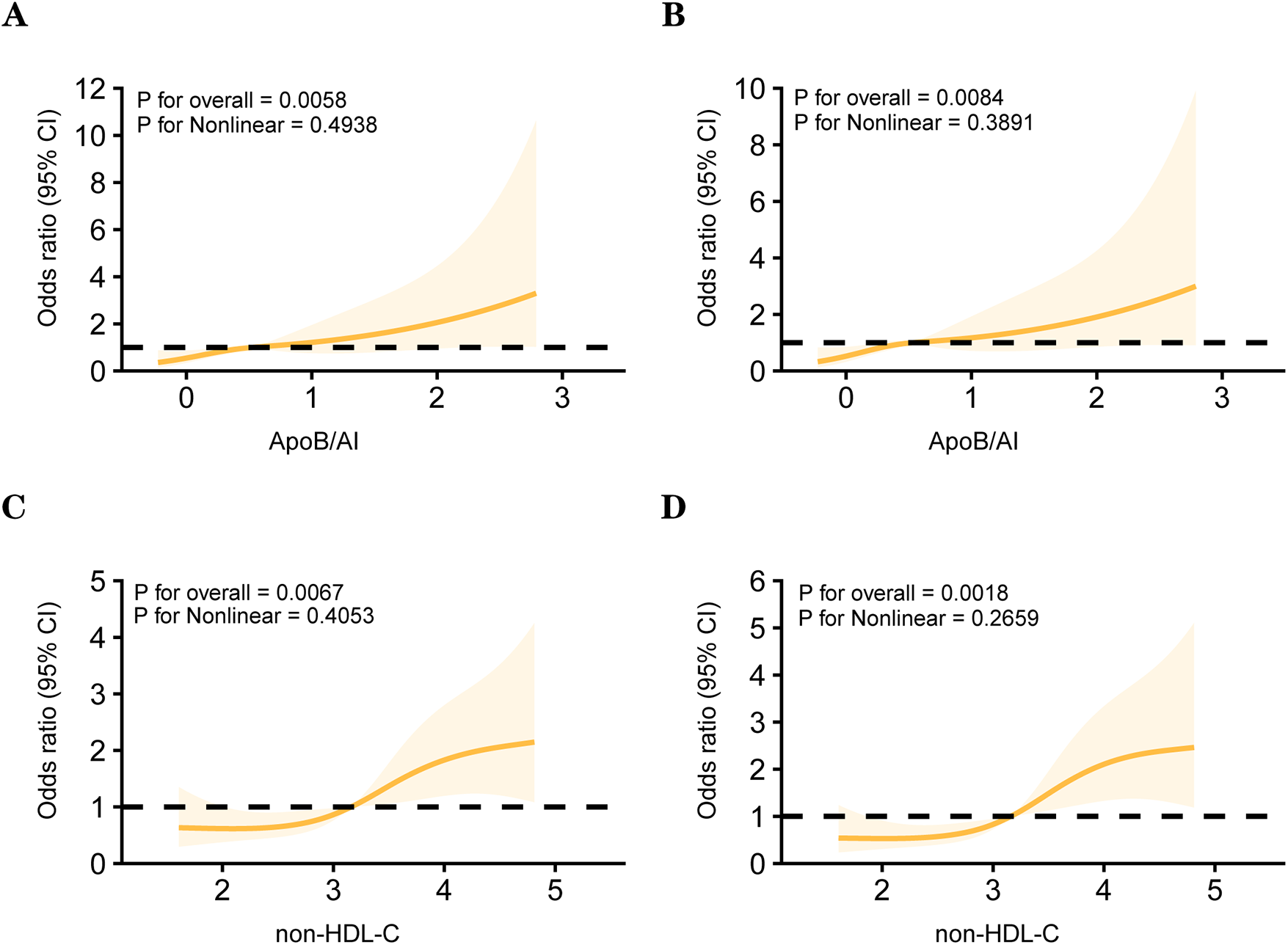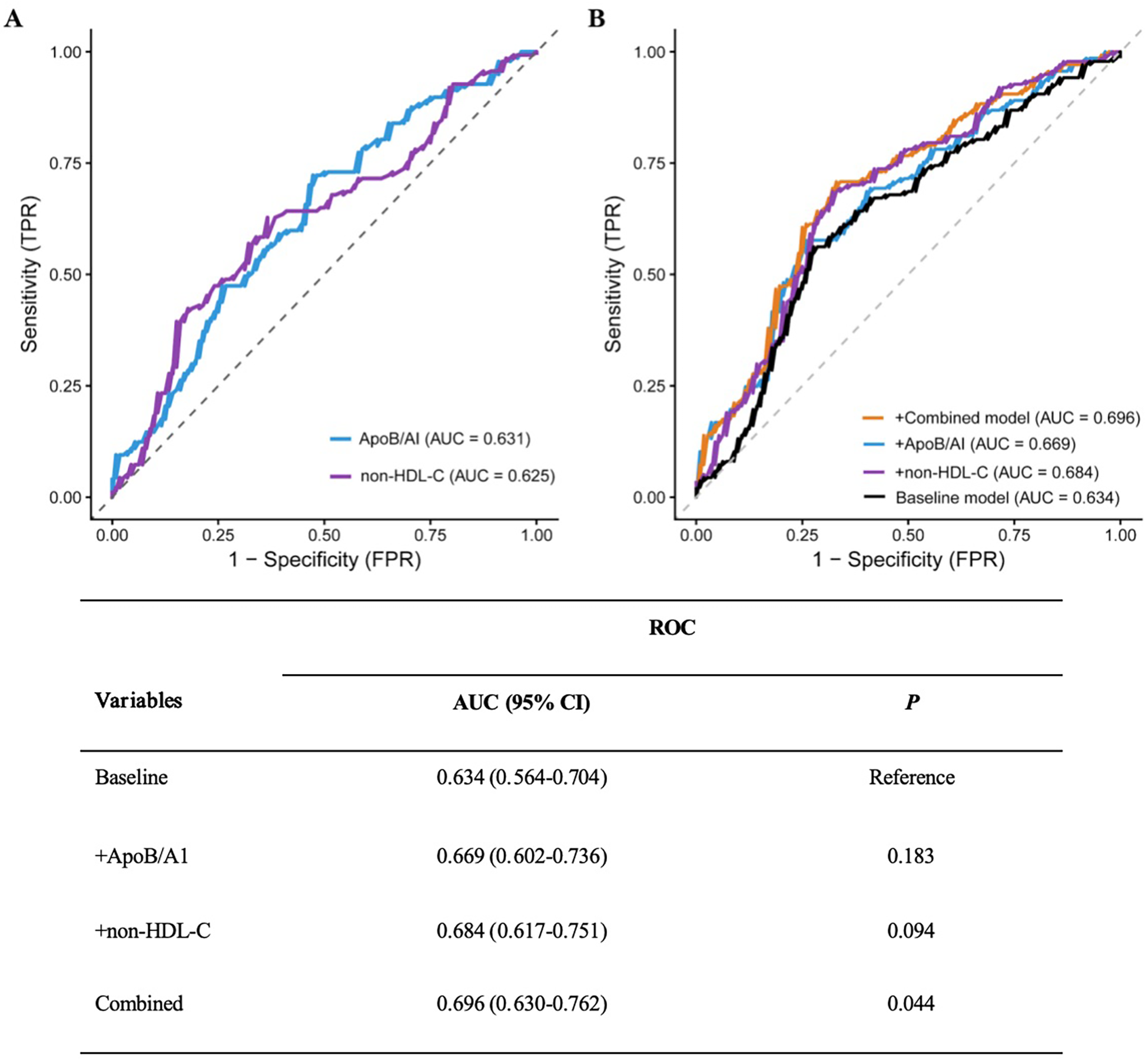 | HDL/ApoA1 | 0.89 (0.82, 0.98) | 0.89 (0.80, 0.99) | 0.88 (0.83, 0.97) | Z = −0.478 | 0.633 |