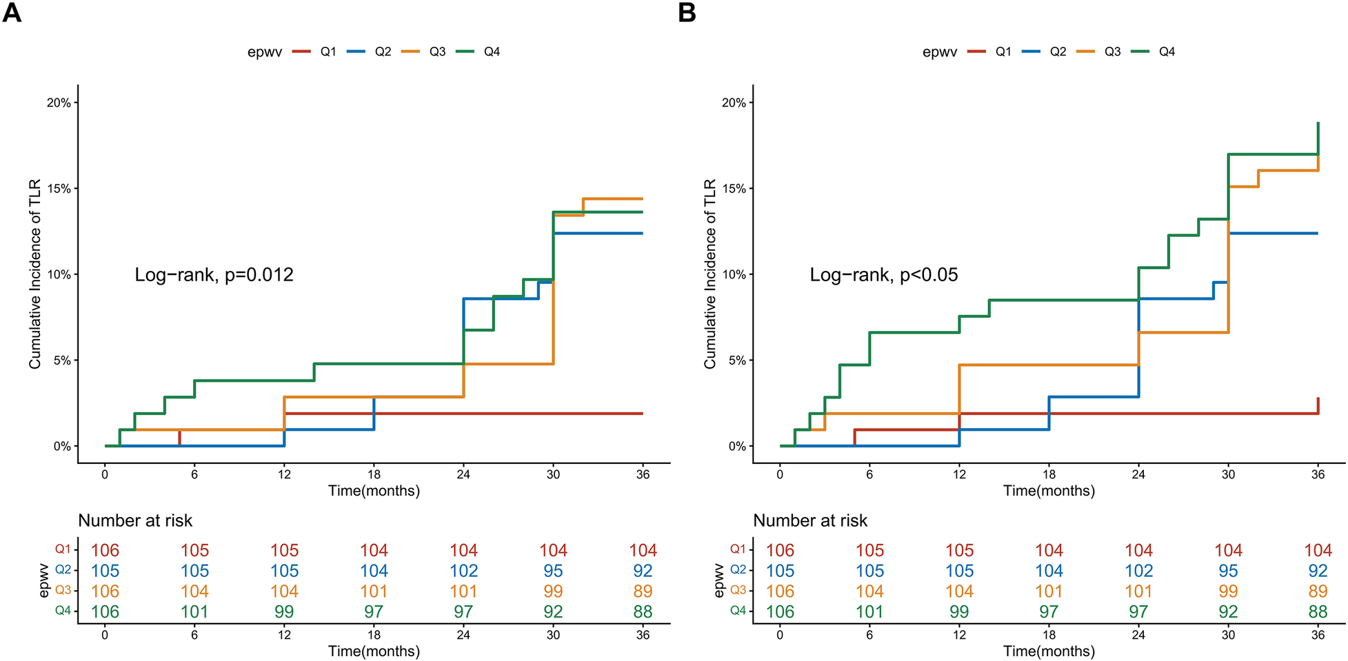 Association of ePWV and ePWV quantile with TLR.