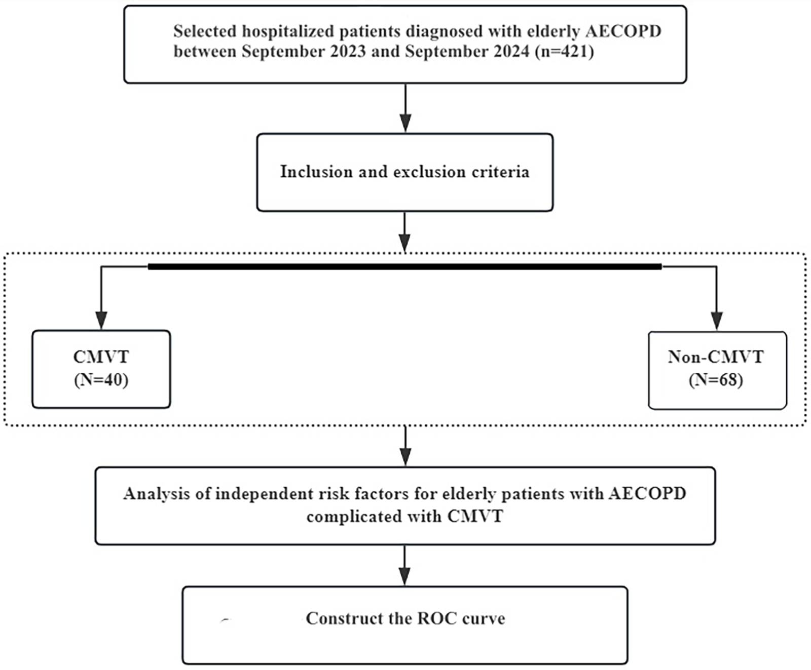 Group definitions: Elderly COPD patients with concurrent CMVT were classified as the CMVT group, while those without CMVT were the non-CMVT group.