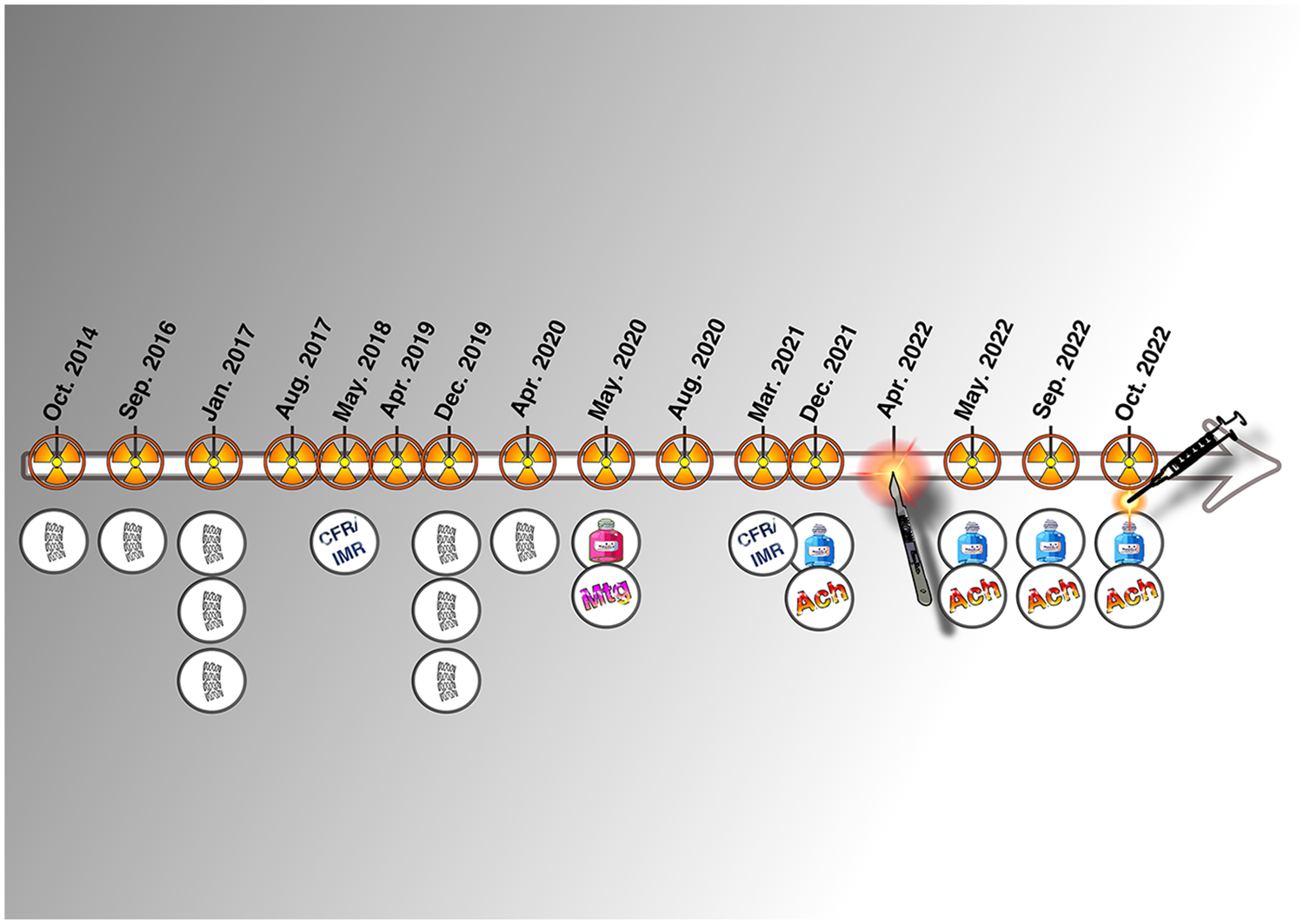 Graphical timeline of the invasive history of the patient.