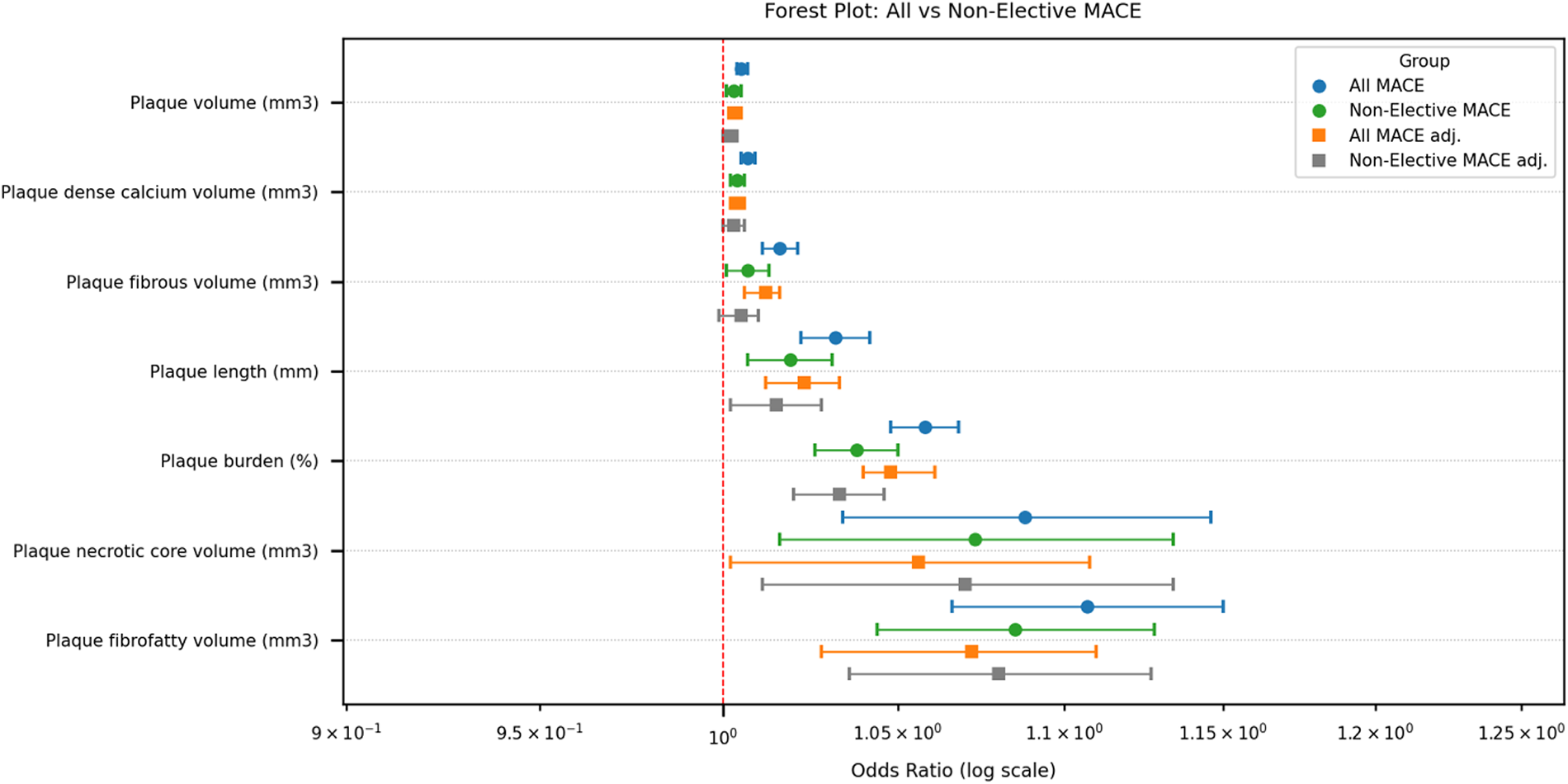 CI, confidence interval; MACE, major cardiovascular adverse events; OR, odds ratio, non-calcified plaque volume (total plaque volume minus calcified plaque volume).