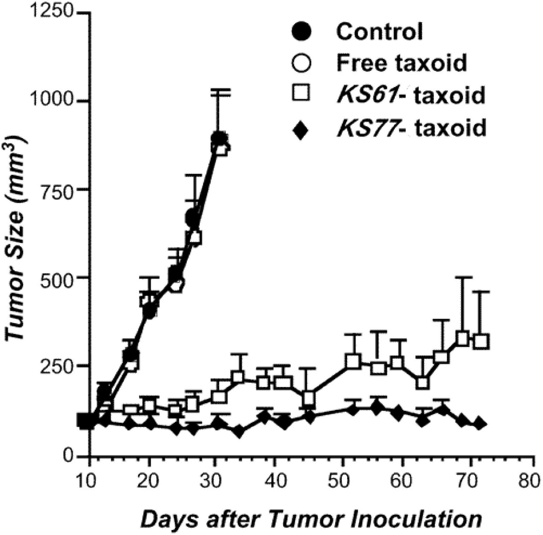 Antitumor activity of the KS77/KS61–PTX conjugates against A-431 xenografts in SCID mice (Ojima et al., 2002).