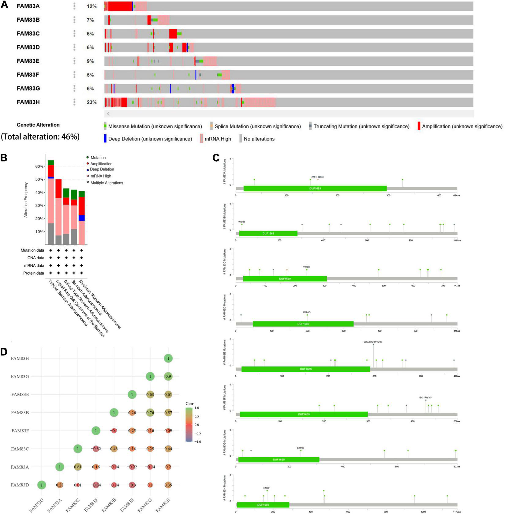 Genetic Alterations in the FAM83 Family and Their Correlation With Each Other in Patients With Stomach Adenocarcinoma