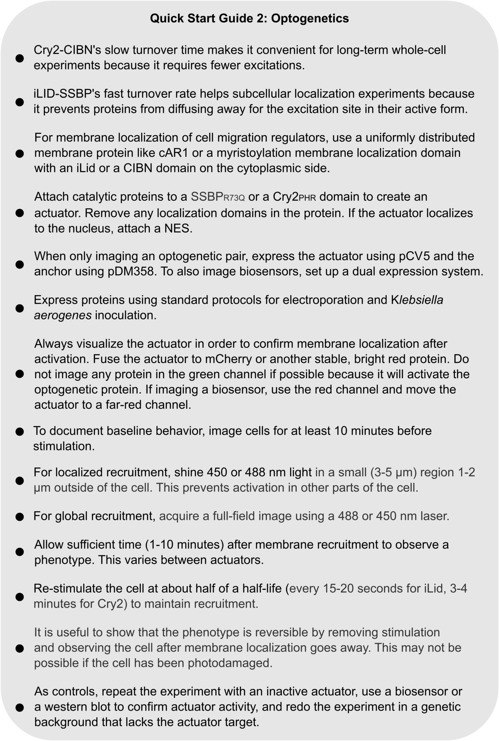 QUICK START GUIDE 2. Instructions for designing and carrying out an optogenetic experiment with Cry2-CIBN or an iLID system in Dictyostelium.