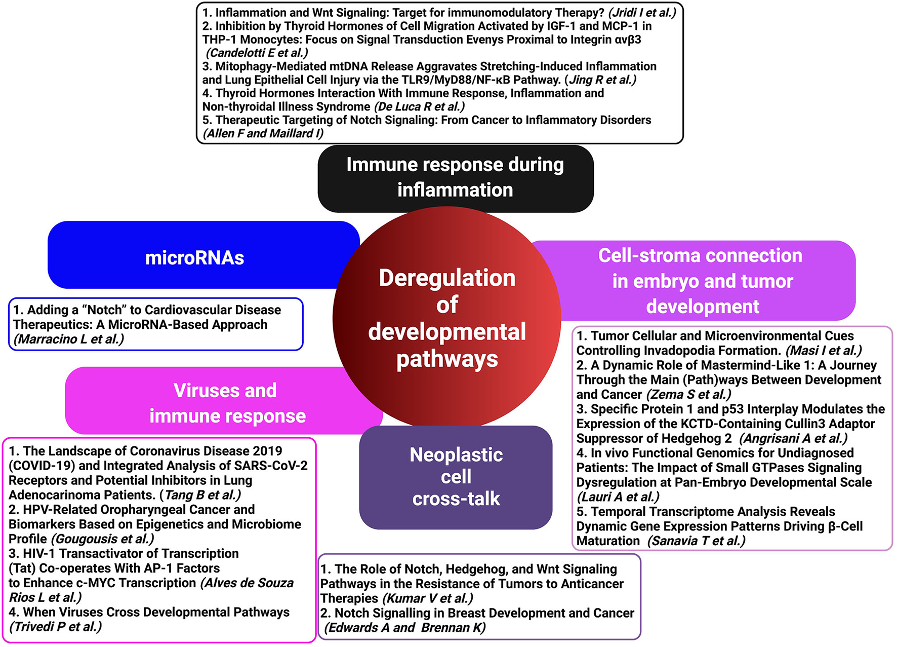 The collection provides an updated overview of the most relevant issues on how deregulation of signaling pathways impinges on different homeostatic and pathologic mechanisms, including birth defects and cancer. Indeed, in this issue of Frontiers in Cell and Developmental Biology many authors delineate how developmental pathways are intimately involved in inflammation and, with a high frequency, are fundamental mediators of virus-induced cancers.